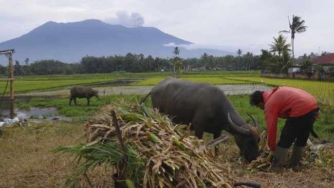 Sumatera Barat - Warga di lereng Gunung Marapi kembali beraktivitas normal meski Gunung Marapi masih terus mengeluarkan abu vulkanik. Begini potretnya.