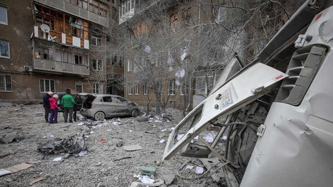 Kharkiv - Perang antara Rusia dengan Ukraina masih bergejolak. Serangan terbaru Rusia menghantam apartemen dan merusak puluhan mobil di Kharkiv.
