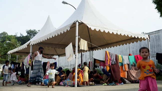 Aceh - Ratusan pengungsi Rohingya bertahan di tempat penampungan sementara di Sabang, Aceh. Sejak November, sudah 1.200 pengungsi Rohingya tiba di Aceh.