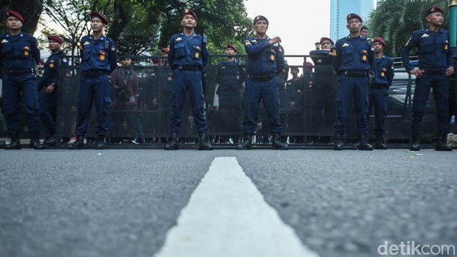 Jakarta - Jelang debat perdana capres-cawapres, sejumlah aparat kepolisian memperketat penjagaan untuk pengamanan.