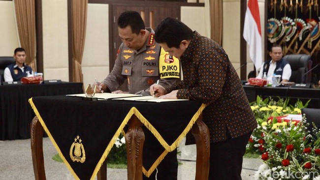 Momen Kapolri-Erick Thohir Teken MoU Polri-PSSI Demi Sepakbola RI