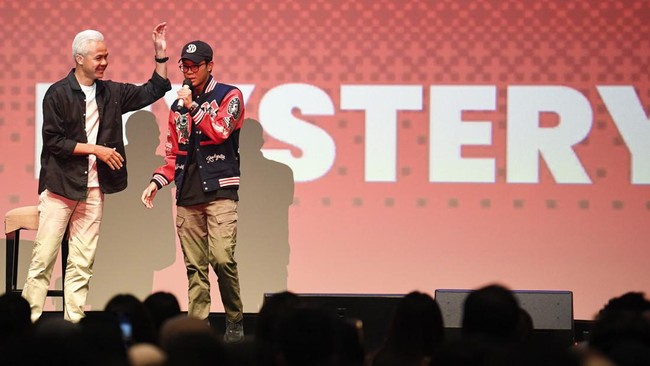 Jakarta - Ganjar Pranowo hadiri festival Teman Cerita di Djakarta Theater, Jakarta. Ganjar berikan pandangannya terhadap industri kreatif bagi GenZ dan milenial.