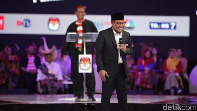 Jakarta - Cak Imin terliat maju dari podium saat menanggapi pernyataan Gibran. Ia melontarkan candaan bahwa majuke depan bisa lebih dekat dengan panelis.