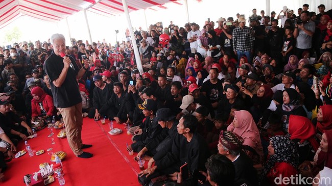 Indramayu - Selain menyapa nelayan, capres nomor urut 3 Ganjar Pranowo juga bertemu petani di Indramayu, Jawa Barat. Pertemuan itu untuk menyerap aspirasi petani Indramayu.