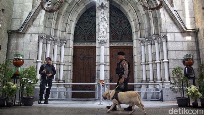 Momen Polisi Sterilisasi Gereja Katedral Jakarta
