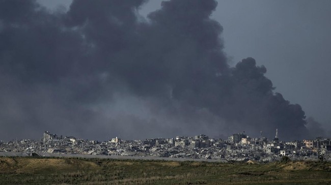 Gaza - Kondisi Gaza masih mencekam akibat gempuran Israel yang tiada henti. Asap hitam dari pengeboman Israel terus mengepung Gaza.