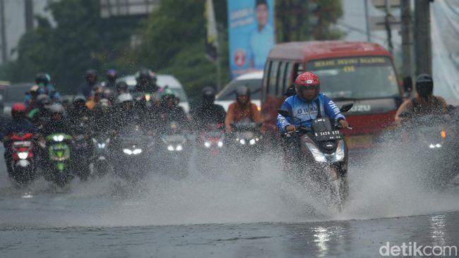 Jakarta - Hujan deras yang mengguyur kota Bekasi membuat jalan Chairil Anwar tergenang. Beberapa pengendara diharap berhati-hati saat melintas.