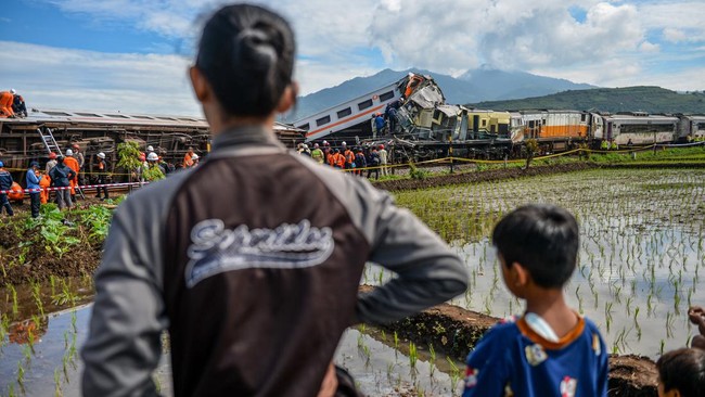 Evakuasi Kereta 'Adu Banteng' di Cicalengka Jadi Tontonan Warga