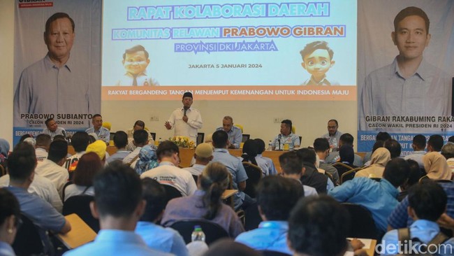 Jakarta - Relawan Prabowo-Gibran Jakarta menggelar Rapat Koordinasi Daerah di DPD Golkar. Dalam rapat ini, relawan diminta meningkatkan sosialisasi ke rumah-rumah warga.