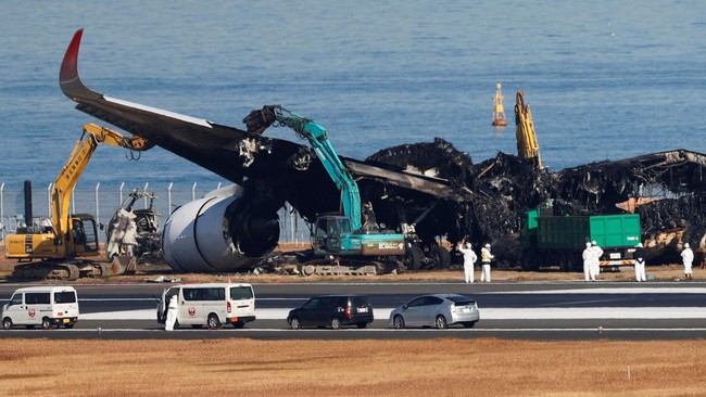 Pesawat yang Terbakar Usai Tabrakan di Bandara Haneda Mulai Dibersihkan