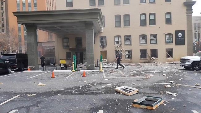 Ledakan mengguncang sebuah hotel bersejarah di Fort Worth, Texas, Amerika Serikat (AS), hingga menghancurkan jendela-jendela dan memicu puing berukuran besar berserakan di jalanan pusat kota. Sedikitnya 21 orang mengalami luka-luka, dengan salah satunya dalam kondisi kritis di rumah sakit. (Jordan Bass/REUTERS)