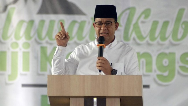 Lampung - Anies Baswedan menghadiri acara Sholawat Kubro dan Ngaji Kebangsaan di Lampung Timur. Acara itu dalam rangka Haul Akbar KH Abdul Chalim dan KH Maksum.