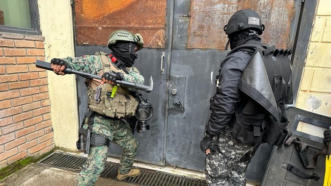 Ekuador - Ribuan aparat kepolisian dan tentara menggerebek sejumlah penjara di Ekuador. Operasi itu guna memulihkan ketertiban pasca kerusuhan geng narkoba.