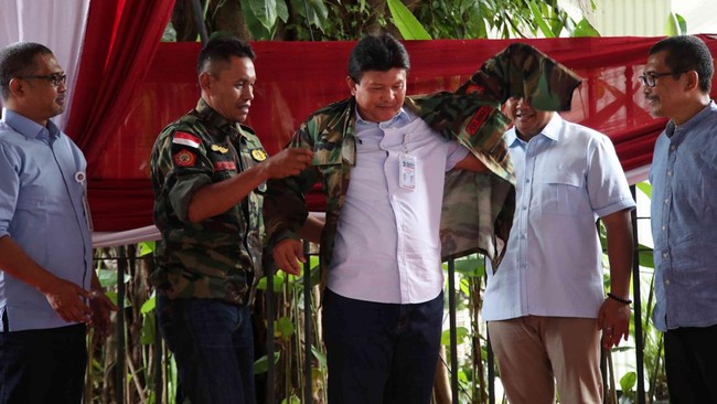 Jakarta - Persatuan Relawan Perlindungan Masyarakat (Perlinmas) Sukabumi deklarasi mendukung Prabowo-Gibran di Pilpres 2024. Deklarasi dilakukan di Kertanegara, Jakarta .