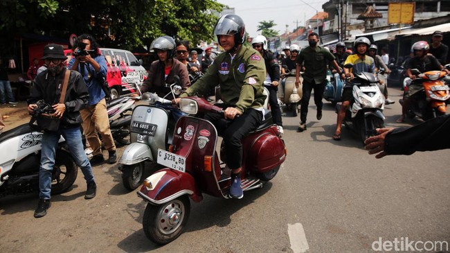 Gaya Ganjar Naik Vespa Merah Blusukan ke Pasar Kajen Pekalongan