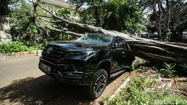 Bruukk.. Pohon Tumbang Timpa Mobil Fortuner di Jaksel