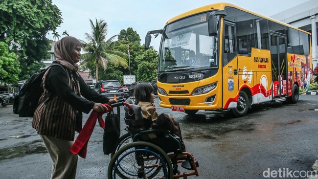 Jakarta - Pemprov DKI Jakarta telah meluncurkan bus sekolah khusus untuk siswa penyandang disabilitas. Bus yang diluncurkan sebanyak lima unit.