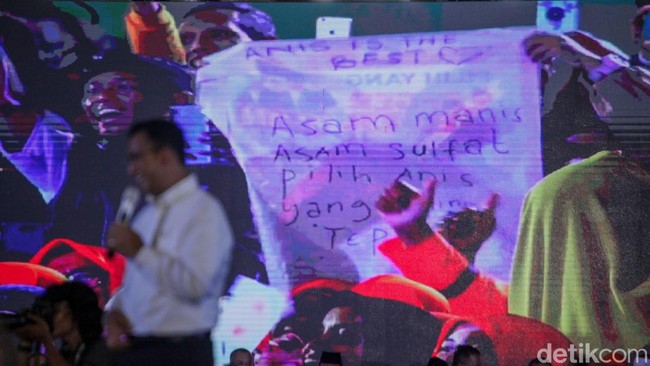 Momen Anies Baca Pantun 'Asam Sulfat' di Kampanye Akbar