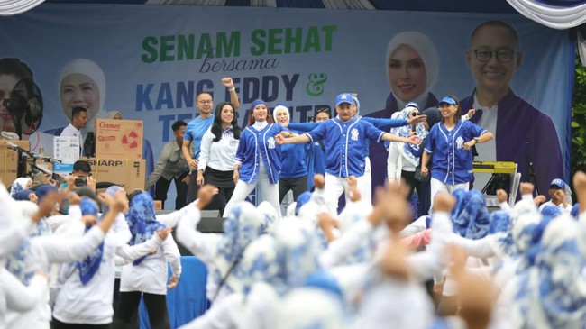 Bogor - Sekretaris Jenderal PAN menggelar senam sehat di Taman Heulang, Bogor. Acara tersebut menjadi hiburan untuk lebih semangan menuju pemilu 2024.