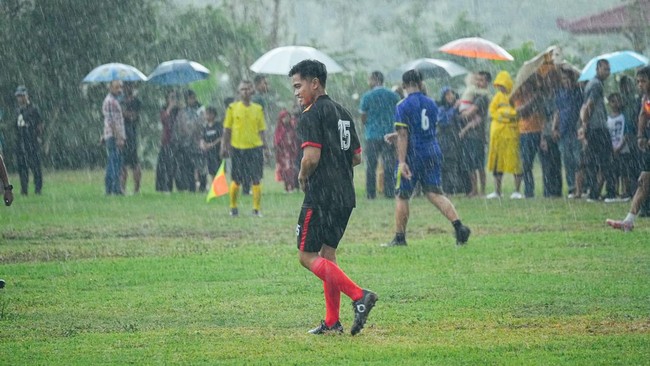 Momen Jokowi-Kaesang Main Bola Sambil Hujan-hujanan