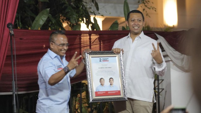 Jakarta - Kelompok usaha warga mendatangi kediaman capres nomor urut 02 Prabowo Subianto. Mereka mendukung Prabowo-Gibran.
