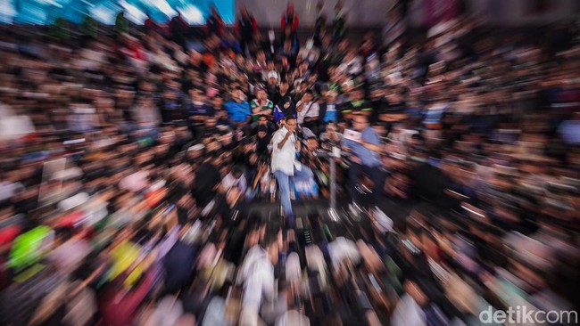 Jakarta - Desak & Slepet AMIN digelar di JIExpo Kemayoran, Jakarta. Warga memadati acara yang dihadiri capres Anies Baswedan.