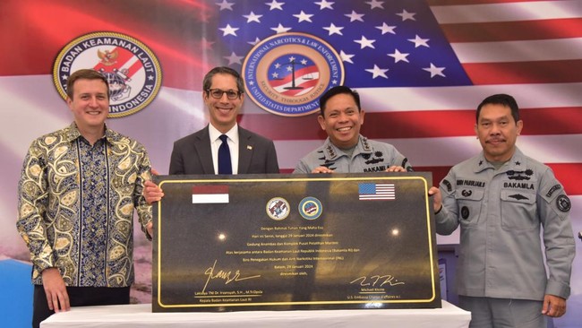 Batam - Indonesia dan AS bekerjasama Pusat Pelatihan Maritim "Anambas" Bakamla RI di Pangkalan Armada Batam. Pusat pelatihan itu diresmikan, Senin (29/1/2024).
