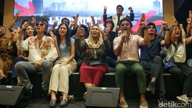 Jakarta - Slank bersama para musisi-aktivis pendukung Ganjar Pranowo-Mahfud Md, meluncurkan single baru berjudul 'Salam M3tal' sebagai bentuk dukungan.