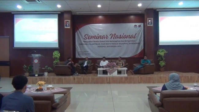 Jakarta - Himpunan Mahasiswa Politik (Himapol) Indonesia menggelar seminar nasional. Seminar mengangkat tema Menyambut Pemilu Damai 2024 Berintegrasi dan Bermartabat.