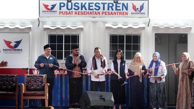 Cirebon - Ketum Perindo Hary Tanoesoedibjo dan Siti Atikoh meresmikan Pusat Kesehatan Pesantren (Puskestren) di Ponpes KHAS Kempek dan Ponpes Buntet, Cirebon.