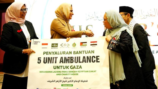 Kairo - NU Care-Lazisnu PBNU terus menyalurkan bantuan kemanusiaan untuk warga Gaza. Kali ini, bantuan berupa 5 (lima) unit ambulans dikirimk Indonesia untuk Palestina.