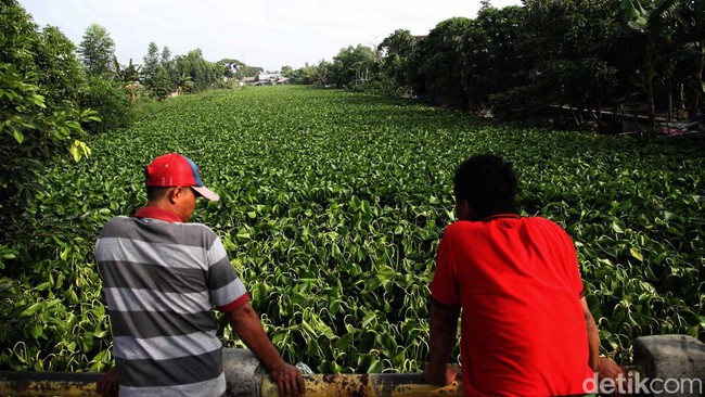 Waduh! Eceng Gondok 'Jajah' Sungai di Muara Bakti Bekasi