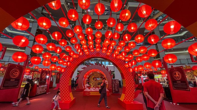 Jakarta - Tahun Baru Imlek 2024 jatuh pada Sabtu, 10 Februari mendatang. Semarak menyambut Tahun Naga Kayu ini mulai terlihat dari sudut kota.