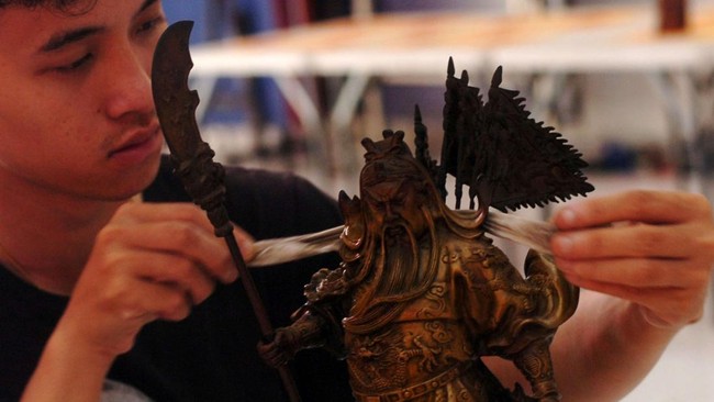 Tegal - Klenteng Hok Ie Kion di Tegal menggelar ritual Kimsin atau tradisi mencuci dan membersihkan patung dewa-dewi, Minggu (4/2). Ritual itu untuk menyambut Imlek.