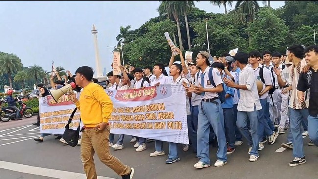 Jakarta - Ratusan pelajar dari wilayah Jabodetabek mendeklarasikan untuk menolak ujaran kebencian dalam pelaksanaan Pemilu 2024. Deklarasi itu dilakukan di Patung Kuda.