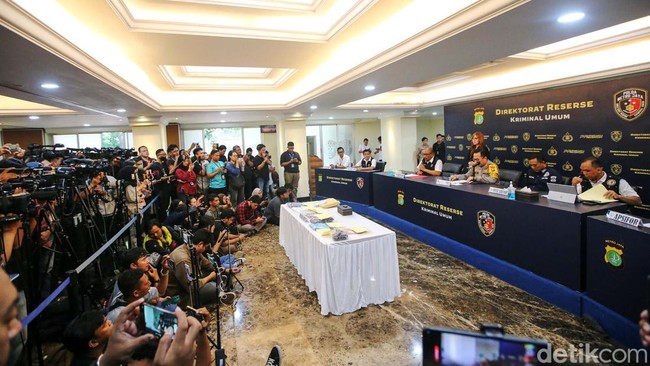 Jakarta - Polisi menggelar jumpa pers kasus kematian Dante (6) anak dari artis Tamara Tyasmara yang diduga dibunuh Yudha Arfandi. Barang bukti juga ditampilkan.