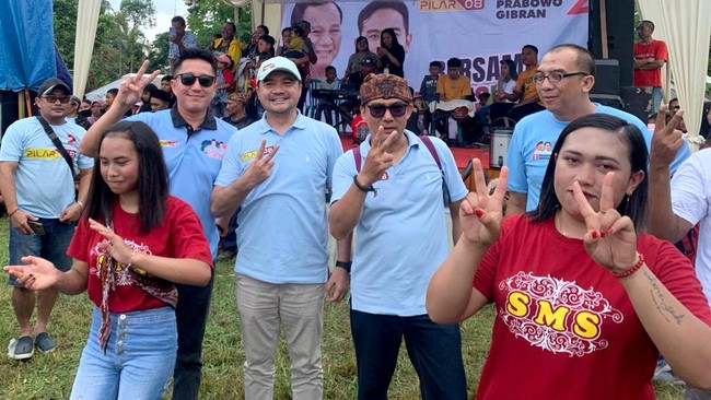 Jakarta - Kelompok relawan pendukung paslon Prabowo-Gibran 'Pilar 08' terus menyemangati parpol pengusung di setiap kampanye sejumlah daerah di kontestasi Pemilu 2024.