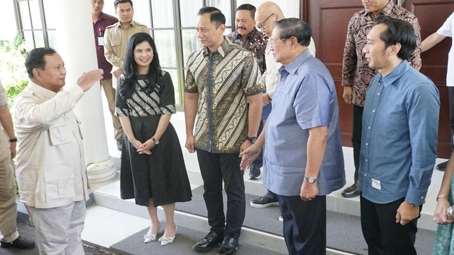 Jakarta - Capres nomor urut 02, Prabowo Subianto menyambangi kediaman Ketua Majelis Tinggi Partai Demokrat Susilo Bambang Yudhoyono (SBY) di Pacitan. Ini momennya.