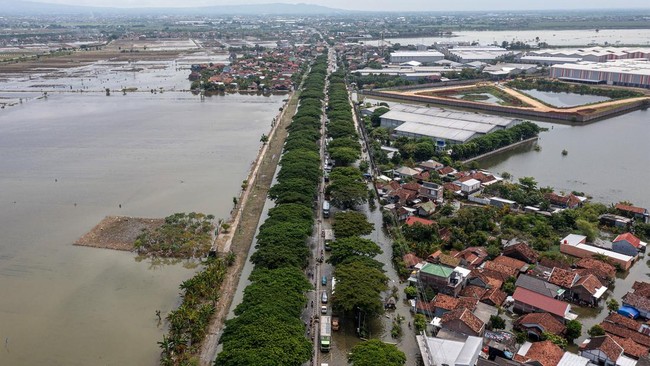 Demak - Banjir masih menggenangi wilayah Kecamatan Karanganyar, Demak, Jawa Tengah, Minggu (18/2/2024). Ini penampakannya.