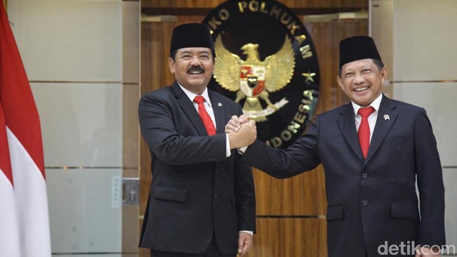 Jakarta - Hadi Tjahjanto melakukan serah terima jabatan Menko Polhukam. Ia resmi menjabat Menko Polhukam, yang sebelumnya dijabat Tito Karnavian sebagai Plt.