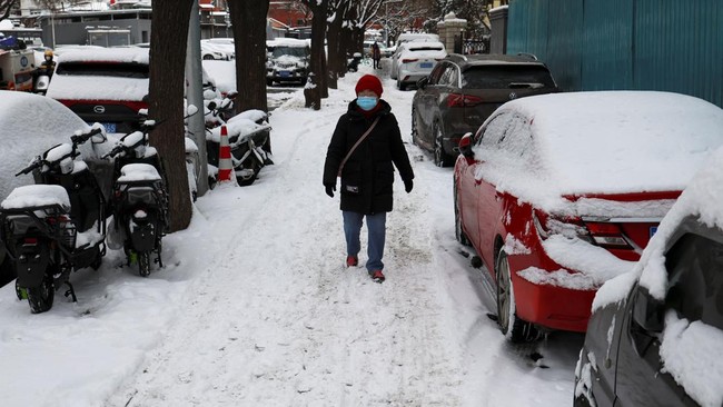 Beijing - Hujan salju yang lebih lebat dari perkiraan melanda Beijing tadi malam. Beijing yang diselimuti salju membuat warga berjibaku membersihkannya.