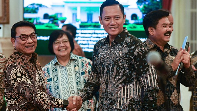 Jakarta - Istana menggelar sidang kabinet paripurna. Sebelum sidang, ada momen Menteri ATR Agus Harimurti Yudhoyono bersalaman dengan Kepala Staf Presiden Moeldoko.