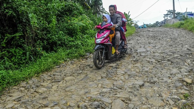 Lebak - Jalan yang menjadi akses warga perbatasan Kabupaten Lebak dan Kabupaten Bogor di Lebak Gedong rusak. Ini penampakannya.