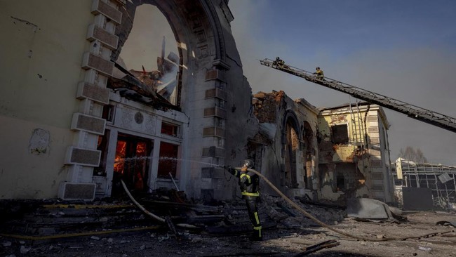 Ukraina - Sebuah bom berpemandu Rusia menghantam stasiun kereta Kostiantynivka, Ukraina. Serangan itu merusak bangunan utama dan blok apartemen di sekitarnya.