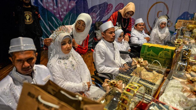 Bandung - Mimbar Hiburan Amal dan Dhuafa (MHABD) menggelar pernikahan massal bagi warga disabilitas di Bandung. Acara ini dalam rangka menyambut Bulan Suci Ramadan.