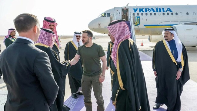 Arab Saudi - Presiden Ukraina Volodymyr Zelensky bertemu dengan Putra Mahkota Arab Saudi Pangeran Mohammed bin Salman (MBS). Pertemuan membahas sejumlah isu.