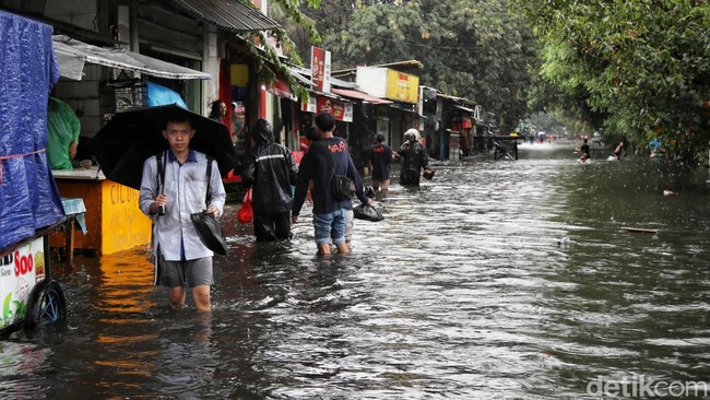 Jakarta - Banjir merendam kawasan Jalan Gaya Motor, Sungai Bambu, Tanjung Priok. Banjir setinggi lutut orang dewasa itu terjadi sejak dini hari karena hujan deras.