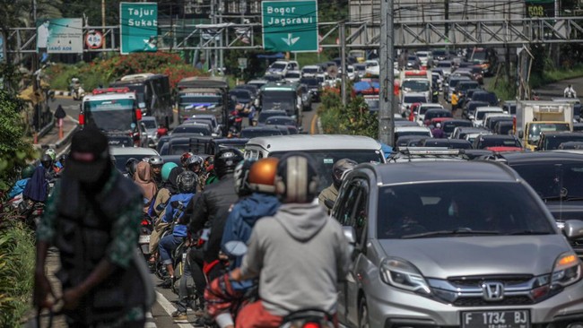 Potret Padatnya Kendaraan di Jalur Wisata Puncak Bogor