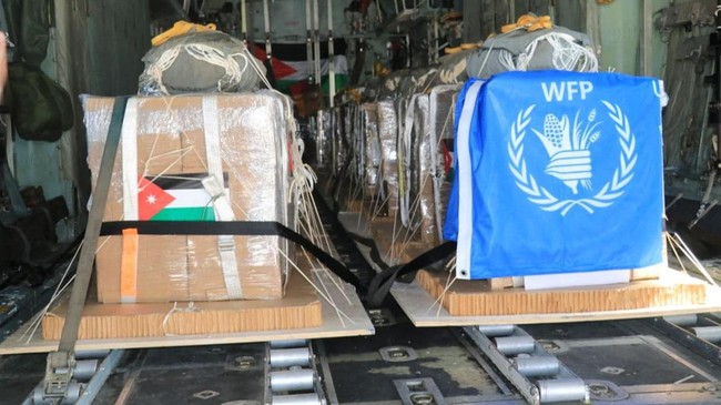 Gaza - Militer Yordania kembali mengirim bantuan melalui udara di Jalur Gaza. Pengiriman dilakukan bekerja sama dengan Amerika Serikat, Prancis, dan Mesir.