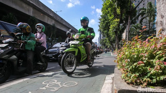 Jakarta - Pemotor bandel yang menerobos trotoar masih ditemukan di jalan KH Mas Masyur, Jakarta, Kamis (7/3/2024). Padahal sudah ada ancaman pidana dalam Dalam UU LLAJ.